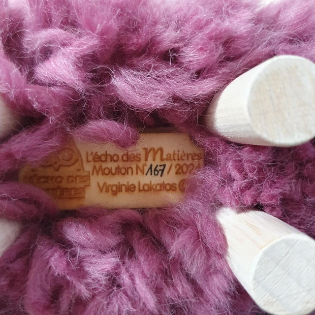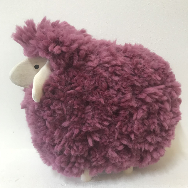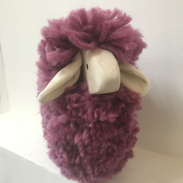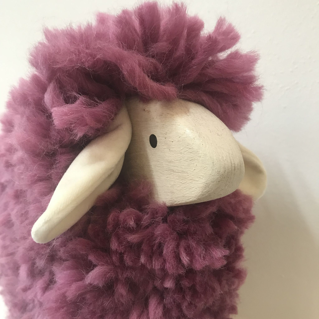 Mouton en bois, coiffé de sa véritable laine.